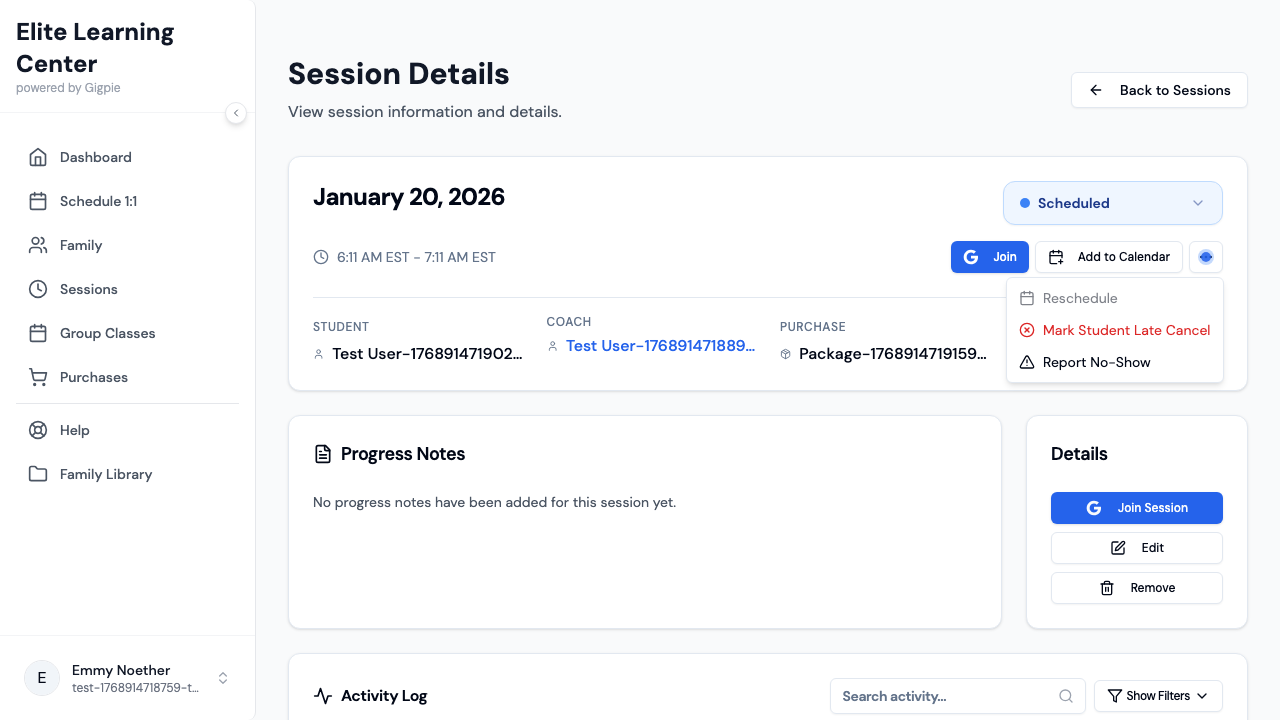 Your report immediately notifies the tutoring organization's administrators. They'll investigate what happened and take appropriate action, which may include rescheduling the session, crediting the hours back to your package, or following up with the coach. You should receive a response from the admin team within one business day.